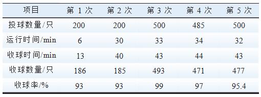 2收球率試驗及分析